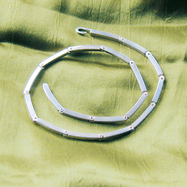 This choker is formed by sterling silver wire with a square profile, cold connected by flexible copper rivets to allow mobility.
