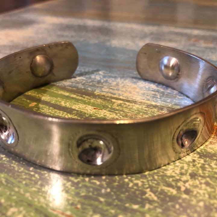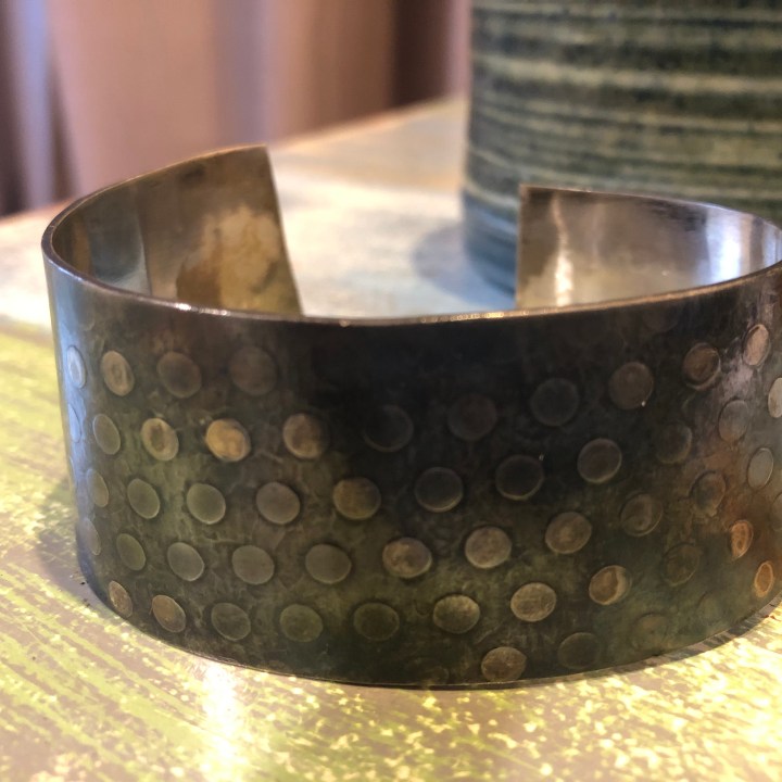 Sterling silver and copper bracelet created using traditional Japanese kumihimo “gathered threads” techniques to braid 0.5mm silver and copper wire into a rigid hollow tube.