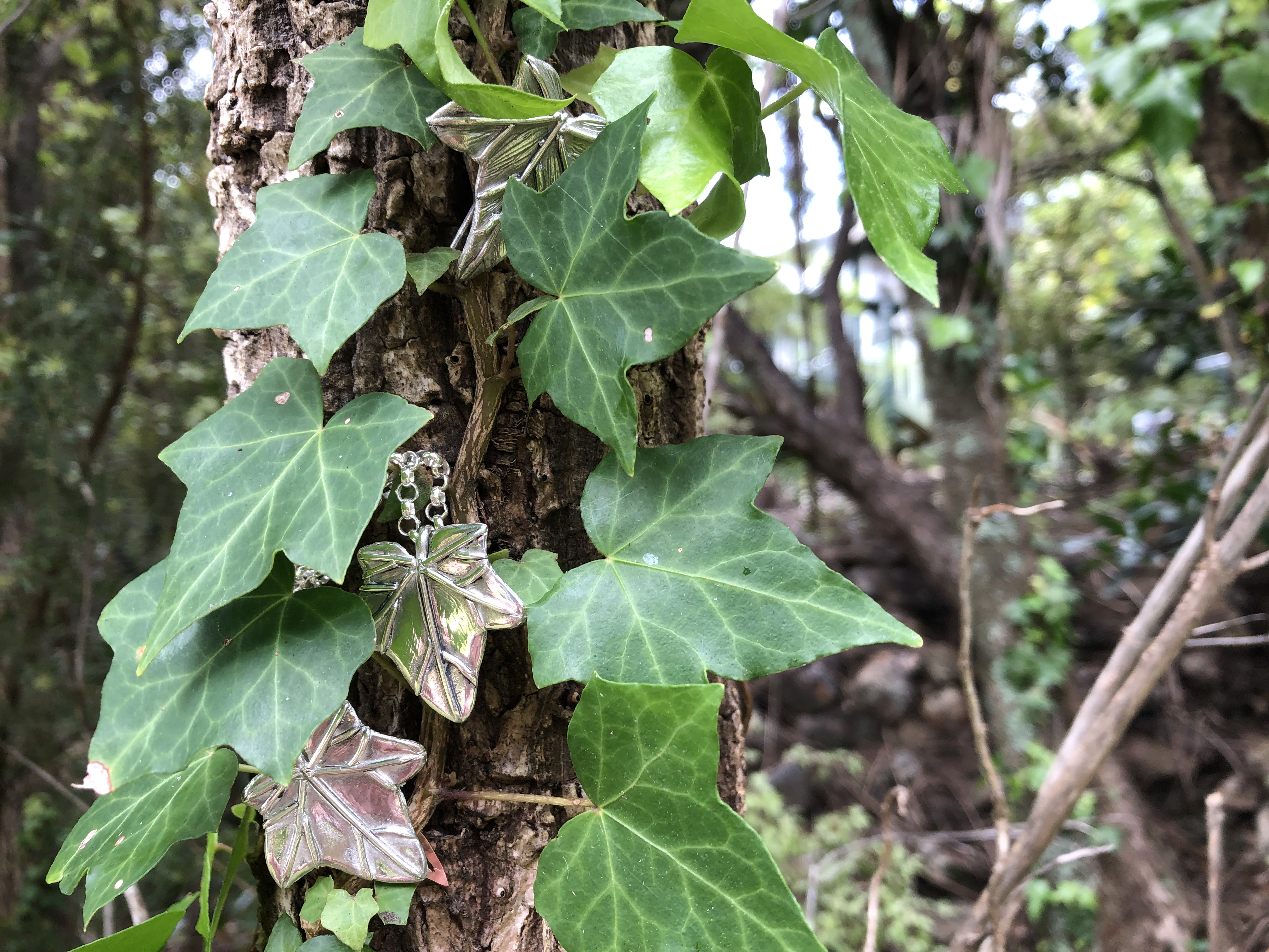 At the moment I’m intrigued by the foliage in the garden. The way the ivy climbs up the water tank just begs to be recreated as jewellery.
