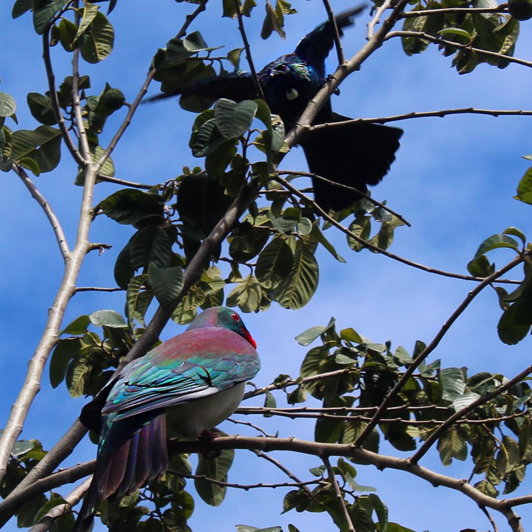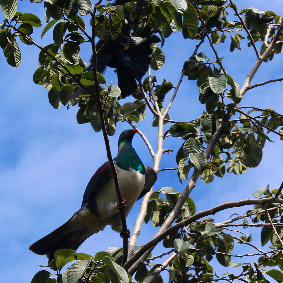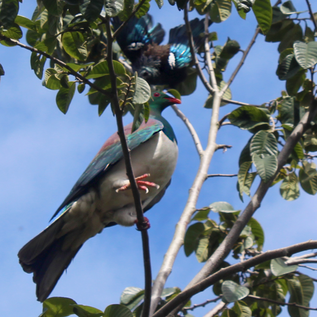 I’ve immortalised the victorious tui in sterling silver as either a pendant on a sterling silver chain or brooch. Meanwhile, as soon as he was gone, the kereru was back on her perch.