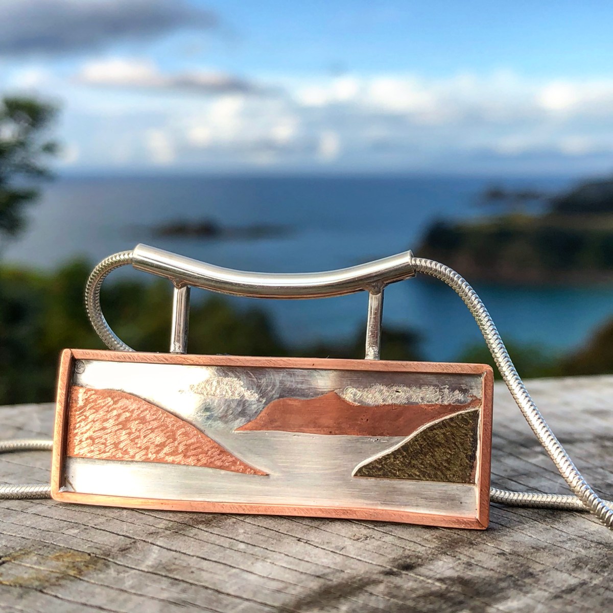 Living on Waiheke Island, I’m surrounded by beautiful vistas and landscapes, with headlands jutting into the water and constantly changing seas and skies. I love trying to capture the different views and the way the light reflects off the water and through the clouds using engraving, texturing and different polishing techniques.