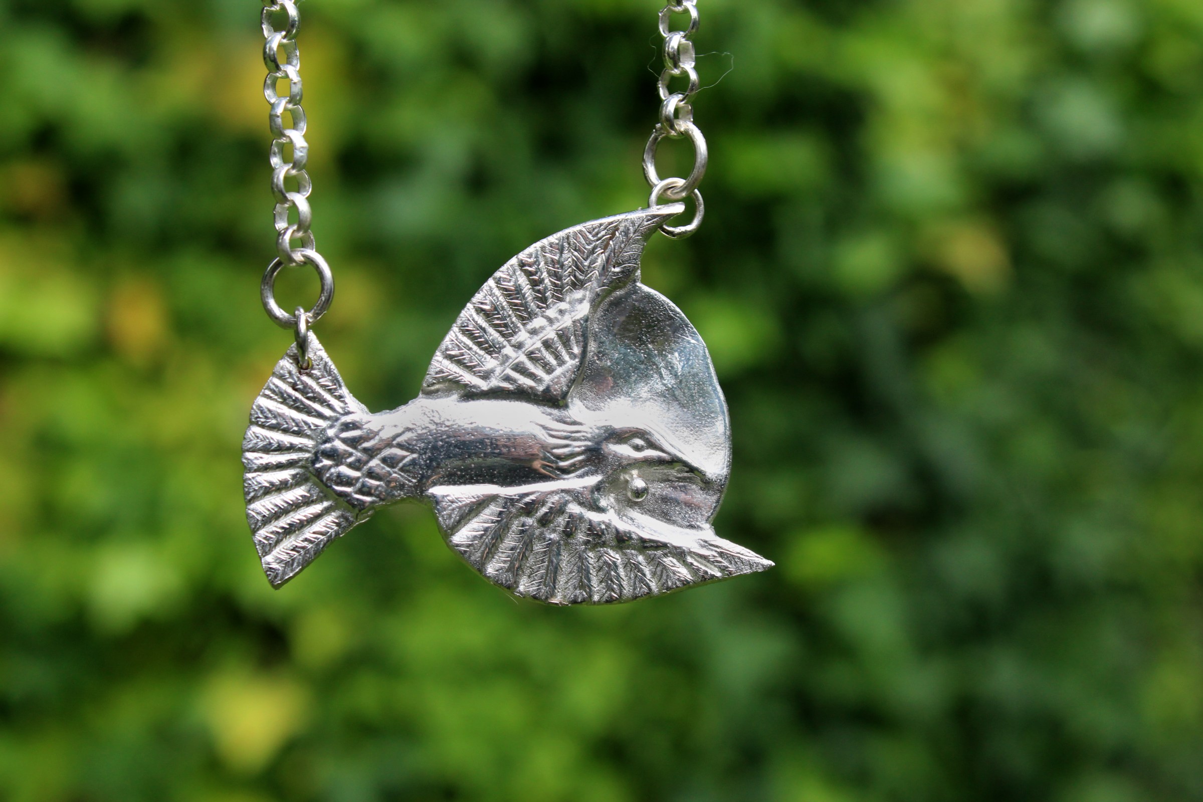 Sterling silver cast tui in flight. Available as either a pendant or brooch.